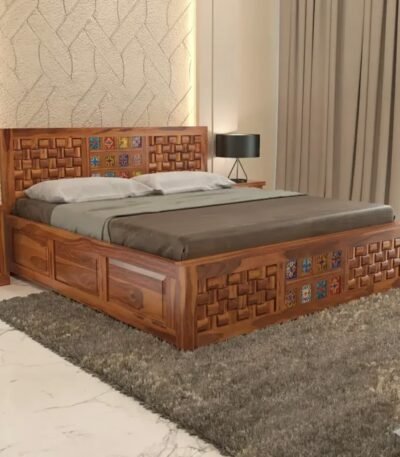 NIWAR + TILE King Size For Bedroom/ Hotel | Solid Wood King Box Bed Solid Wood King Box Bed, 205.74 cm x 190.5 cm (6.75 ft x 6.25 ft) (Finish Color – Honey, Delivery Condition – DIY(Do-It-Yourself))