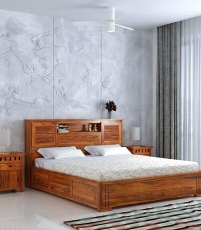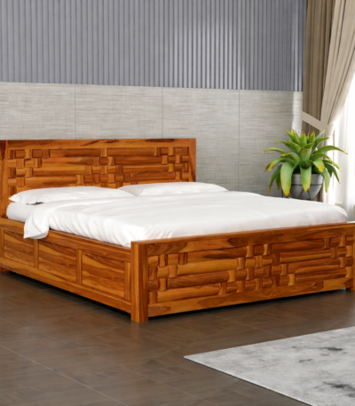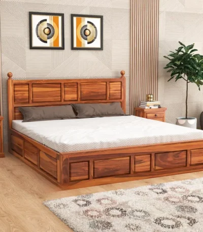 Kuber King Size Bed with Box Storage for Bedroom Living Room Wooden Double Bed Palang (Natural Finish)