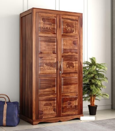 2 Door Wardrobe Organizer for Storage with 1 Shelves Storage & Hanging Space – Sheesham Wood Cupboard for Bedroom – Wooden Almirah Organizer for Clothes Storage