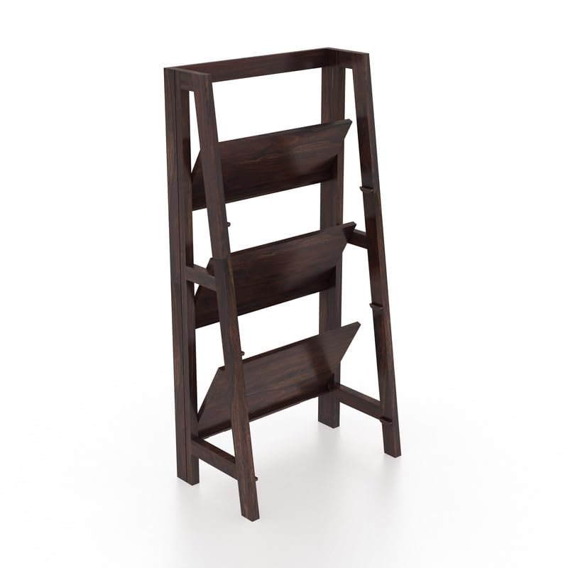 - Sheesham Wood Construction: Crafted from good-quality Sheesham wood, this 3-tier foldable bookshelf gives exceptional durability and a robust build. The walnut finish enhances the wood’s natural grain, lending a timeless and elegant appeal that complements various interiors, including living rooms, offices, lobbies, hotels, and homes. Its eco-friendly construction ensures a sustainable and environmentally conscious addition to your furniture collection.