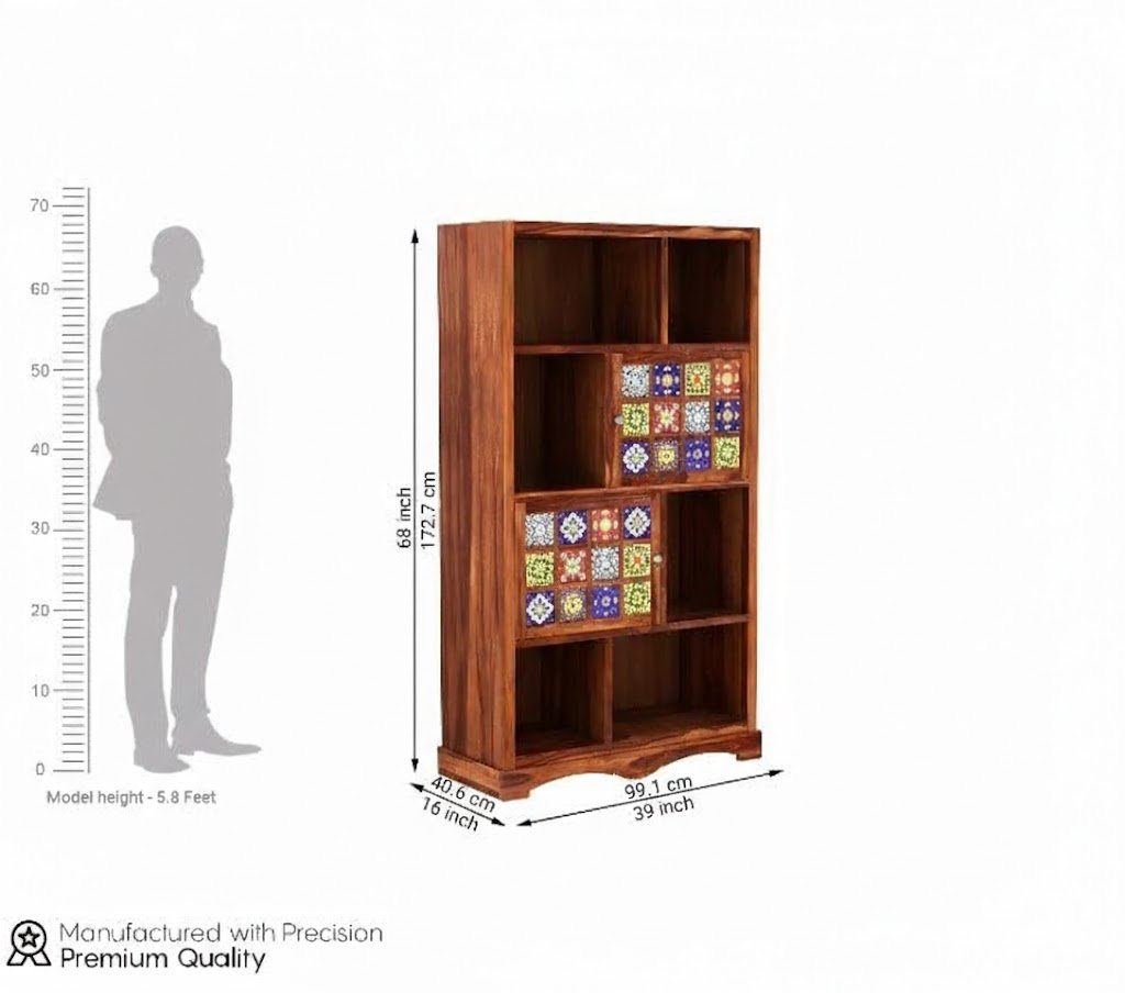 - DIMENSIONS : Wooden Book shelf – Length (39 IN), Width (16 IN), Height (68 IN), Ideal dimension for a wooden Book Shelf | Material: Book Shelf material is solid Sheesham wood | Color: Honey Teak Finish | Package Content: 1 Book Shelf . Sheesham Wood Book Shelf is more solid and durable