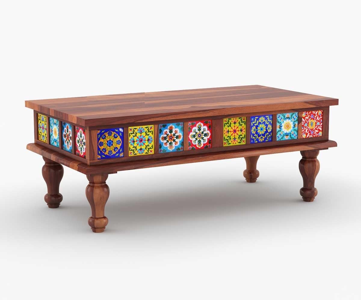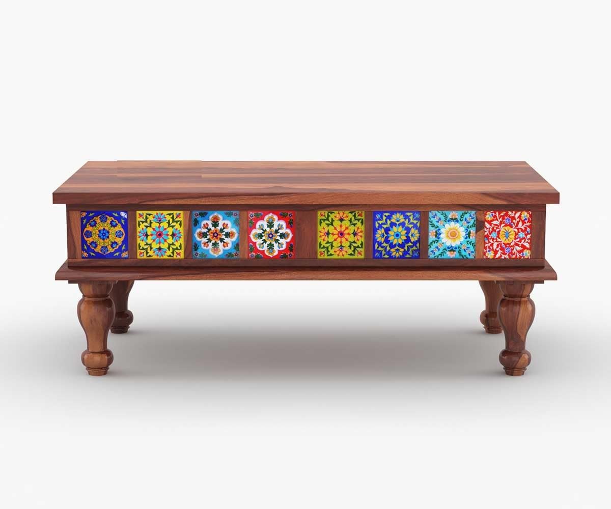 Tile Coffee Table | Sofa Centre Table | Tea Center Table for Living Room | Patio Teapoy Table for Home Furniture (Honey Tiles) (40x23x16 inch)