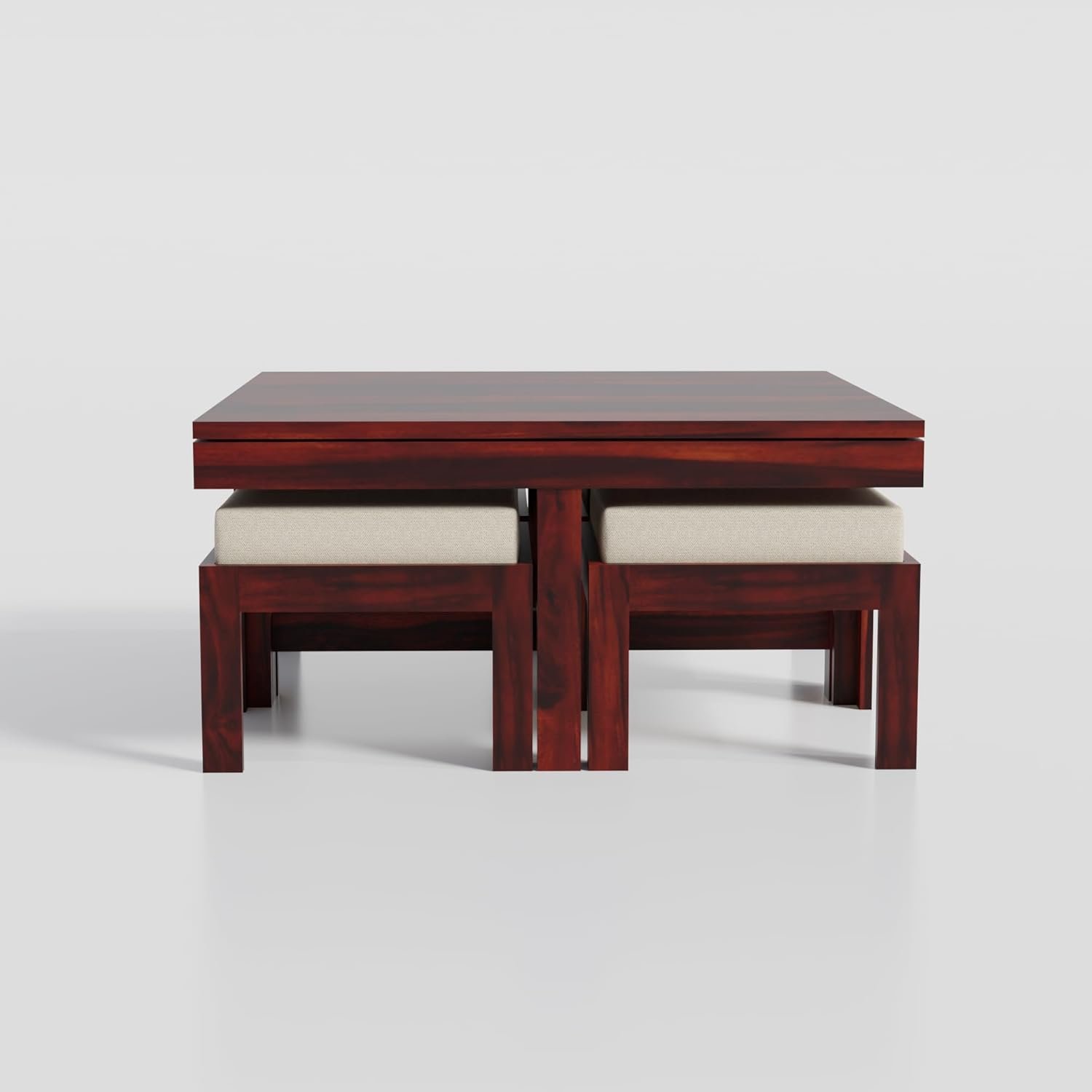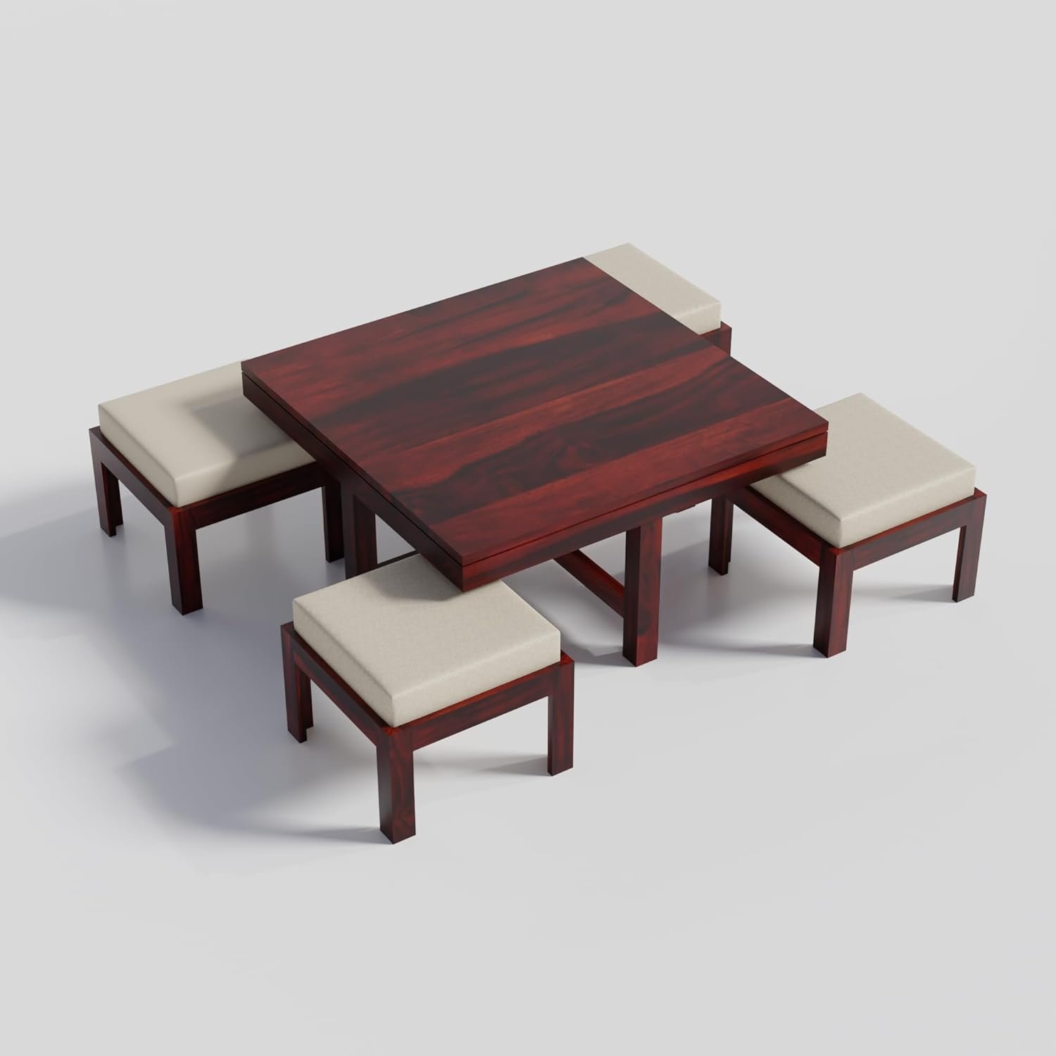 - WOODIO Solid Sheesham Wood Coffee Table With 4 Stool | Square Centre Table With Stool | Center Table With 4 Stools For Living Room | Patio Table With 4 Puffy For Home | Hotel Lounge Table | Rosewood, Espresso Finish, Pre Assembled & Ready To Use