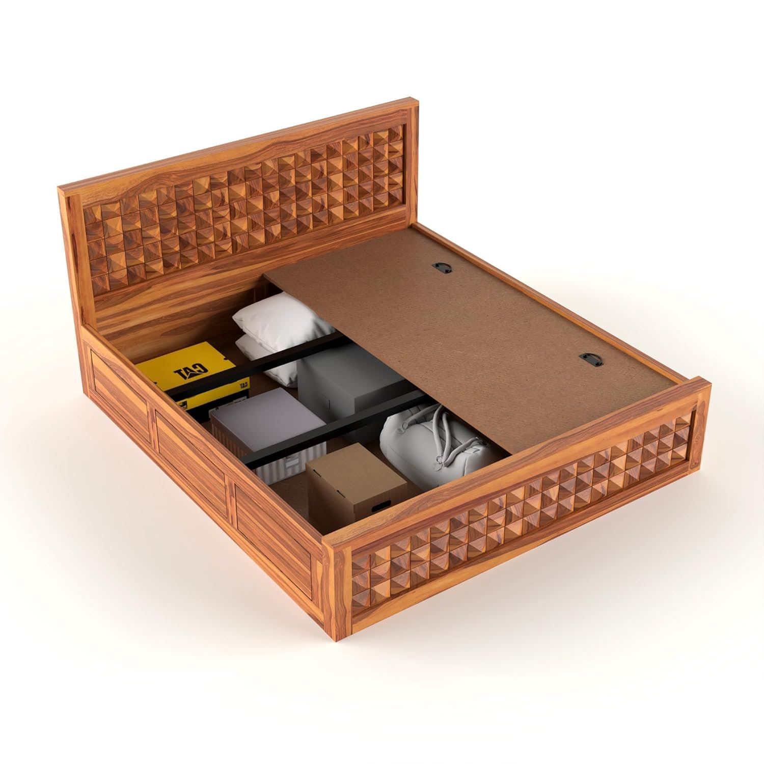 DIAMOND Queen Size Bed with Box Storage for Bedroom – Queen Size Cot with Storage – Solid Wood Bed QueenSize Cot for Bedroom – Wooden Double Bed Palang for Home