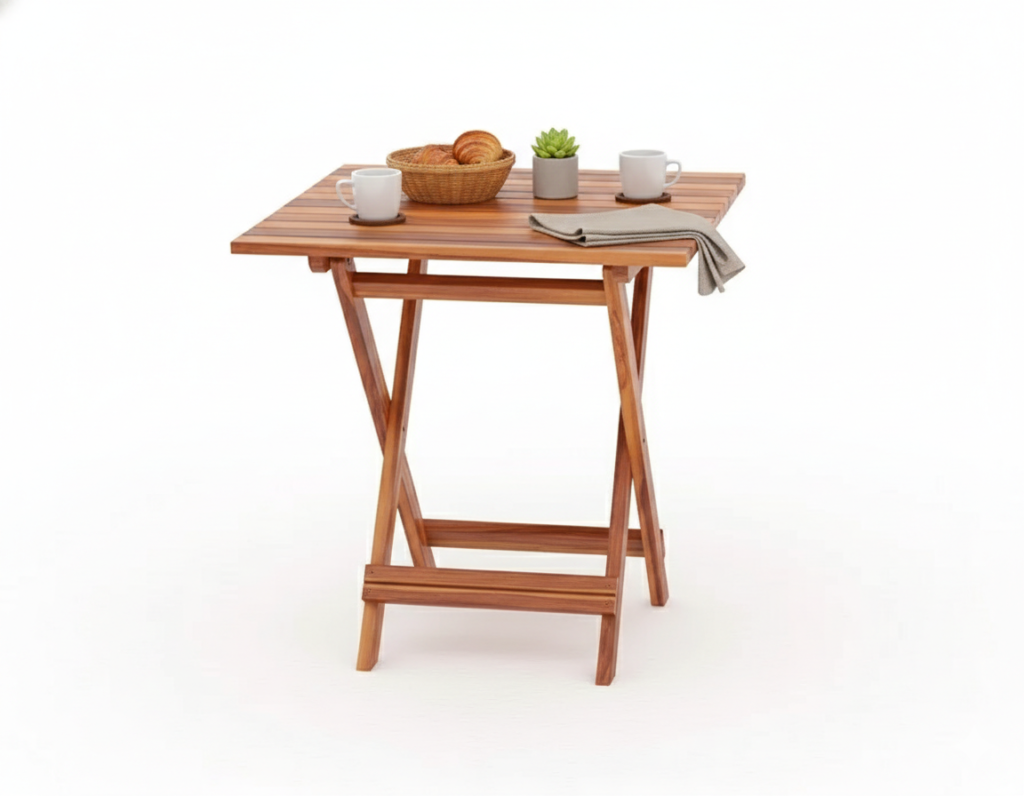 Space-saving wooden folding table set designed for easy storage, convenience, and everyday use.