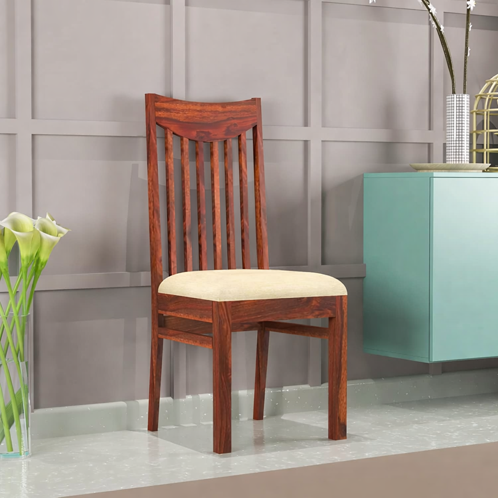 Chairs Set of 2 for Kitchen & Dining Room, Chairs with Cushion, Two Seats, Solid Sheesham Wood, Honey Finish
