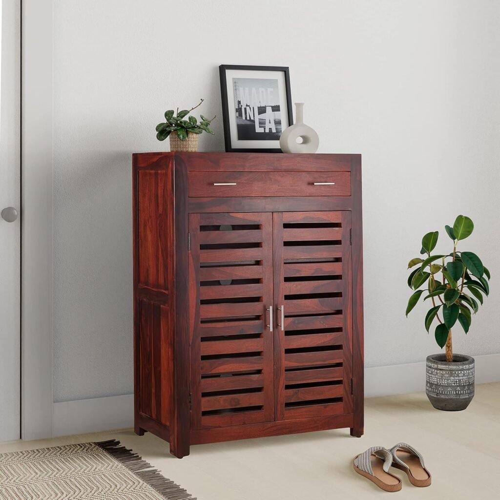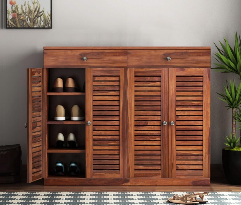 - Elegant Wooden Shoe Rack – Stylish and functional shoe storage cabinet crafted from premium Sheesham wood, perfect for organizing footwear in entryways, hallways, and bedrooms.