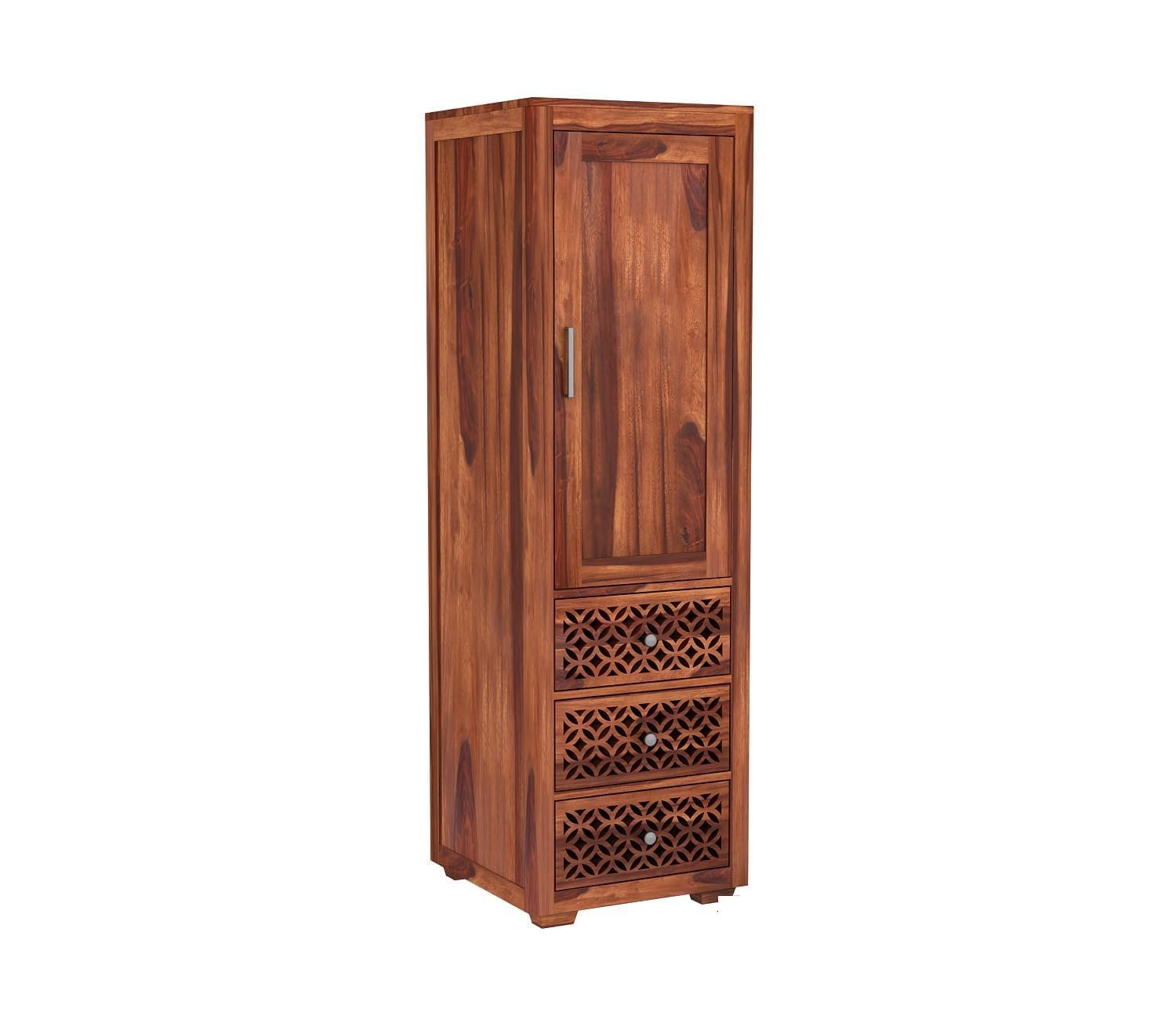 Wardrobe for Clothes Storage | Sheesham Wood Wardrobe with Ceramic Tile Design & 2 Drawers | Handcrafted 1-Door Wooden Almirah for Bedroom | Dark Walnut Finish