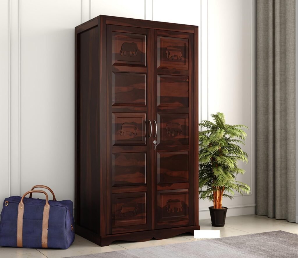 2 Door Wardrobe for Bedroom | Wooden Two Door Almirah for Home | Cupboard Organiser | Clothes Organizer (Honey)