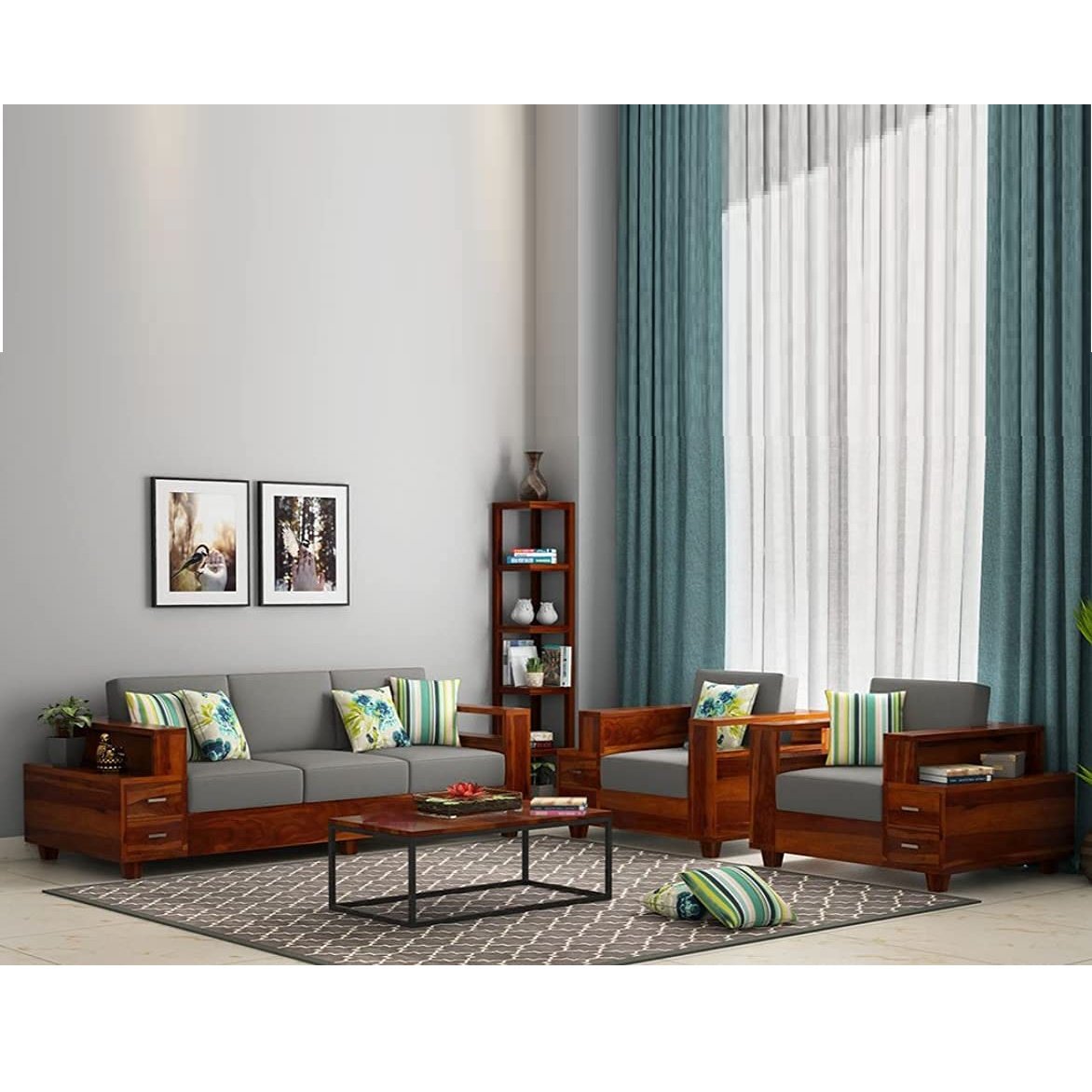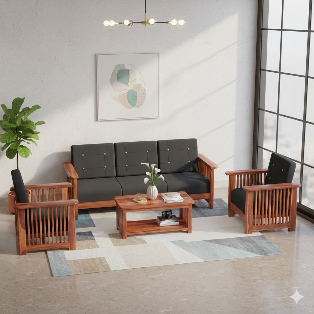 Wooden 5 Seater Sofa Set for Living Room | Home (Natural Teak Finish)